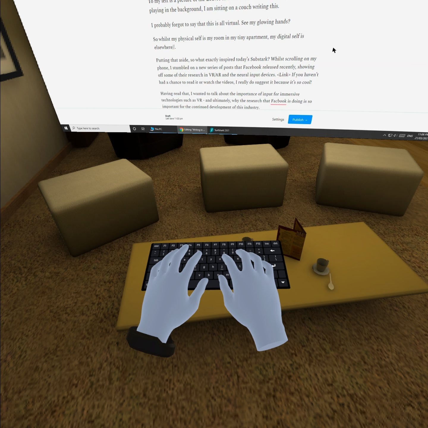 Writing in VR about the evolving interfaces between human and technology